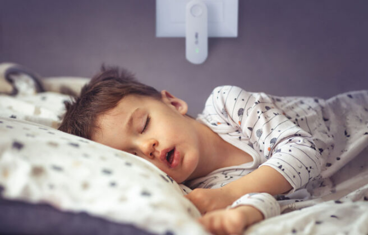Yes, it is specially designed to be safe in homes with children and pets. It runs whisper-quiet and doesn’t release chemicals or heat.